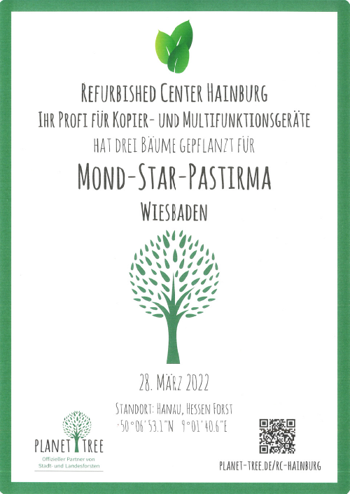Als Teil ihres Engagements für den Umweltschutz unterstützt die Mond-Star-Pastirma Schinkenproduktions GmbH auch die Aktion Plant-Tree. Im Rahmen dieser Initiative wurden in Hanau bereits drei Bäume gepflanzt, um die Stadtgrünflächen im Hessenforst zu erhalten und zu erweitern.